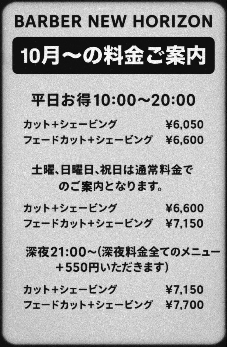 フェードカット+シェービング ¥7,150